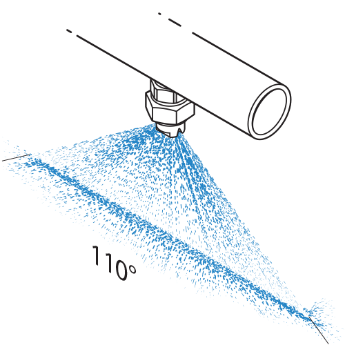 The FT110 series low flowrate spray nozzles produce a flat, fan-shaped spray pattern with a spray angle of 110° at 40 PSI. The spray density tapers off towards the edges of the pattern to allow for overlapping while maintaining uniform spray density. Suitable for a variety of washing and spraying applications.